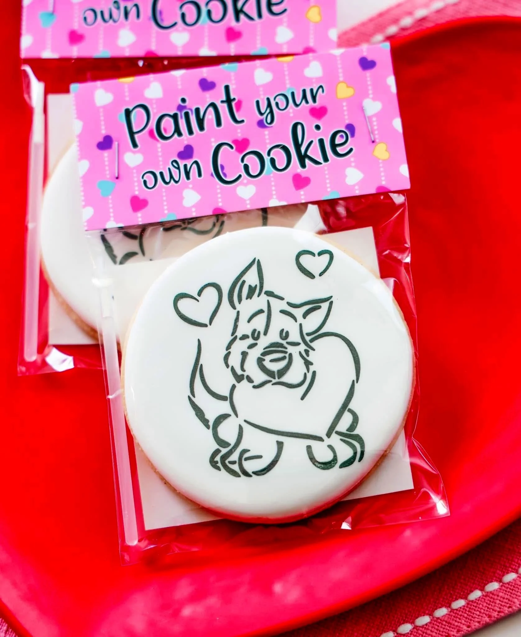 4” vanilla bean cookie. comes with edible paint set and food safe paint brush. choose from puppy, love bug, snowman, doughnut, or little monster